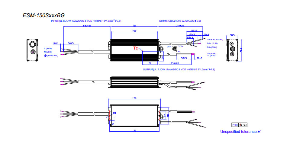 150W 105-1500mA ESM-BG Series Programmable Constant Current LED Driver with DALI-2 and D4i by Inventronics
