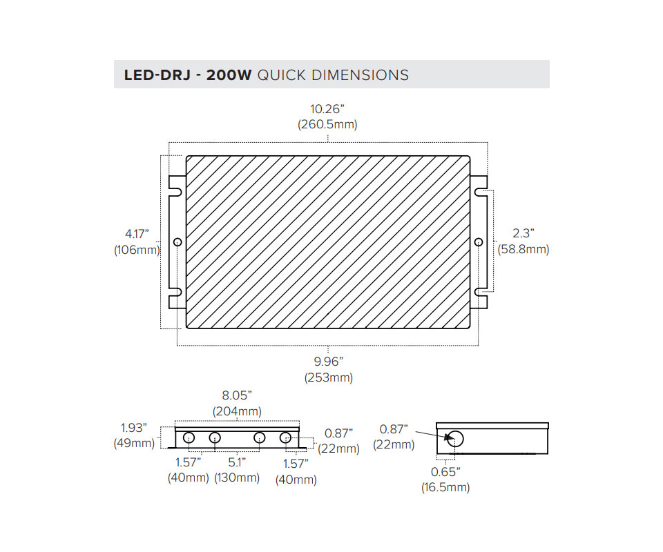 The LED-DRJ Series features universal 100-277V AC power input with high reliability. Standard built-in protections include short circuit, over-current, over-voltage, and over temperature. Used commonly with DMX decoders and controls for secondary side dimming, they can also be used in non-dimming applications (minimum loads apply). Durable aluminum housing features integrated junction box and wet location rating.