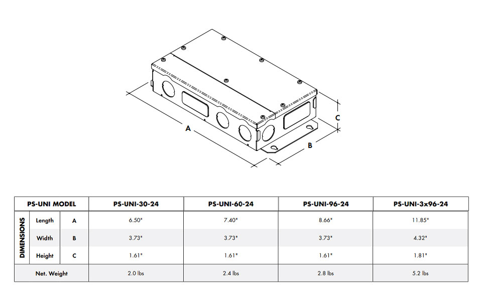 96W 24V 4000mA PS-UNI-96-24 Constant Voltage Power Supply by Luminii