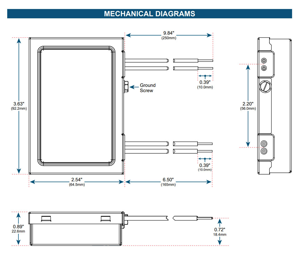 - Easy code compliant J-Box installations with low-voltage/main voltage divider