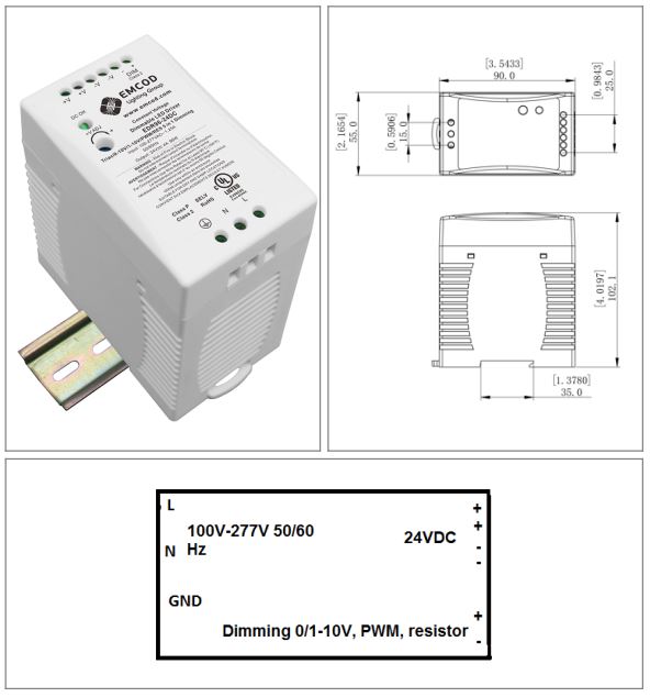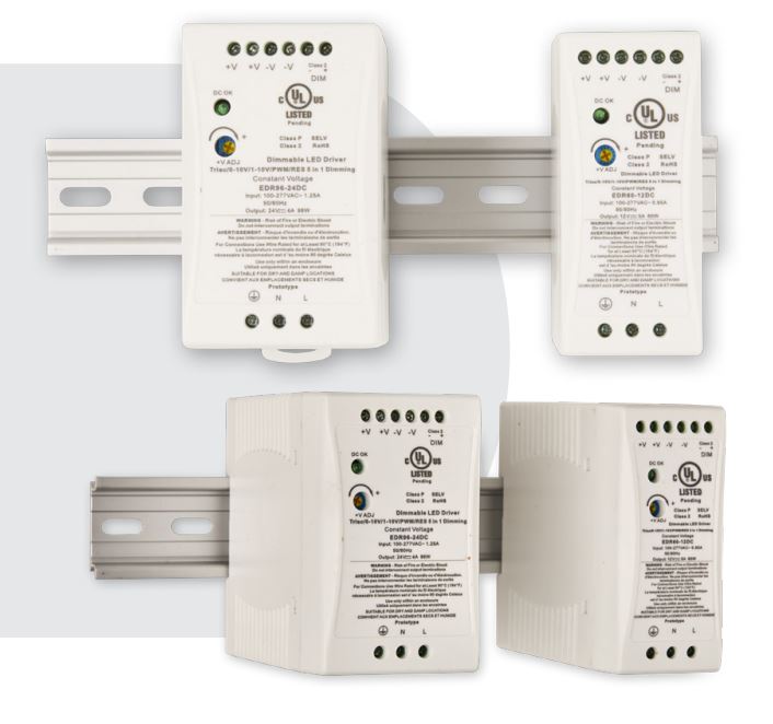 The EDR Series from EMCOD is a 5-in-1 Dimmable Electronic LED Driver with 5% minimum load and different features like Overload, Short circuit, and Thermal protection; Operating temperature -40C ~ +60C; Excellent Line and Load regulation. Available for a wide variety of compatible dimmers, with flicker-free dimming. Plastic case for Din Rail installation.
