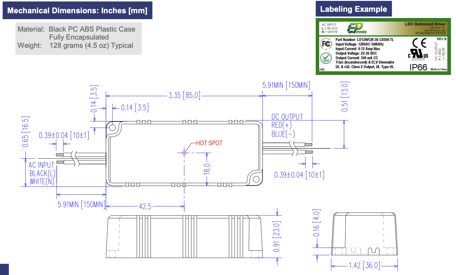 Input Voltage Range: 120VAC, 50/60Hz