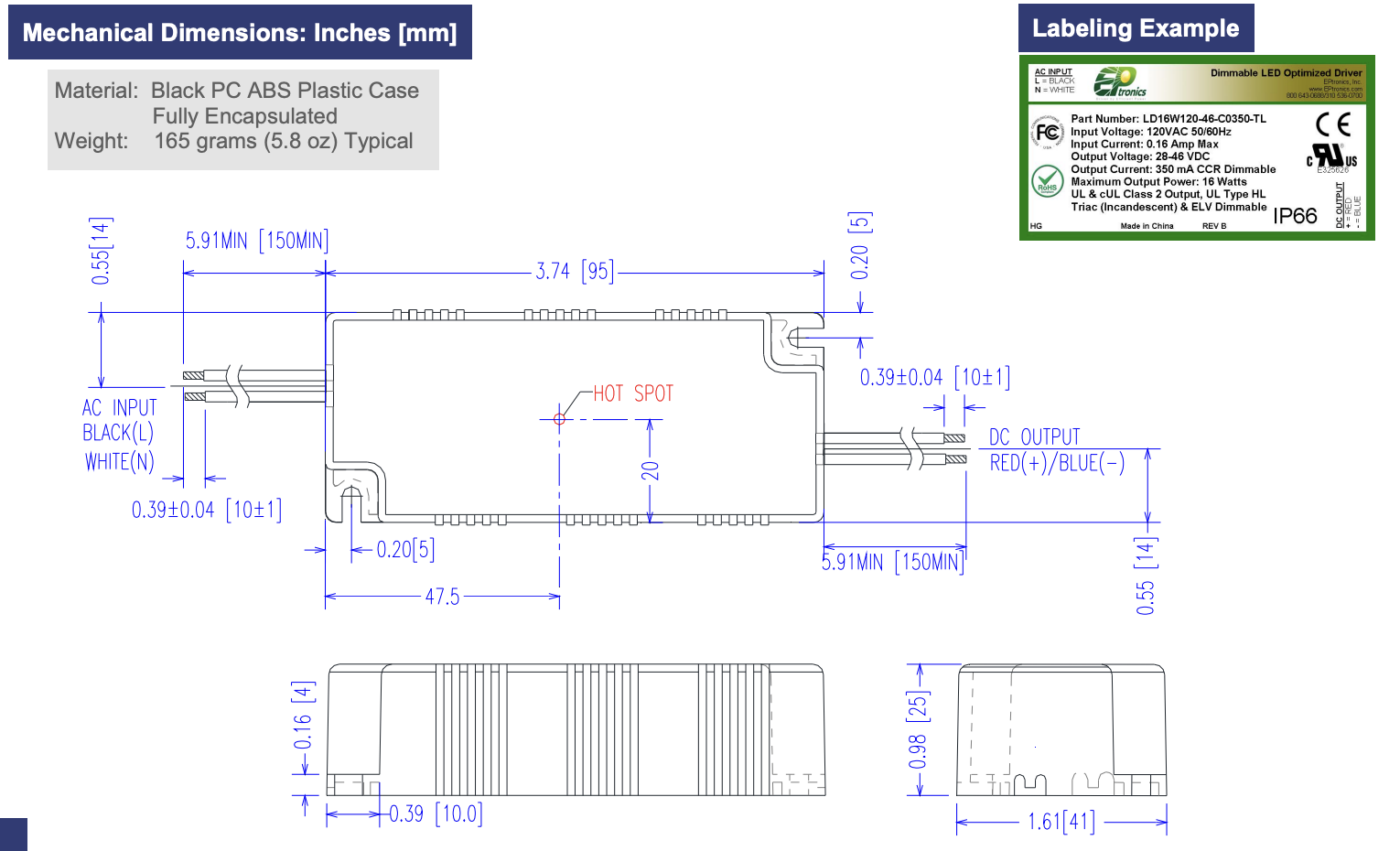 LD16W230-28-C0600-TL Constant Current Dimmable LED Driver by EPtronics
