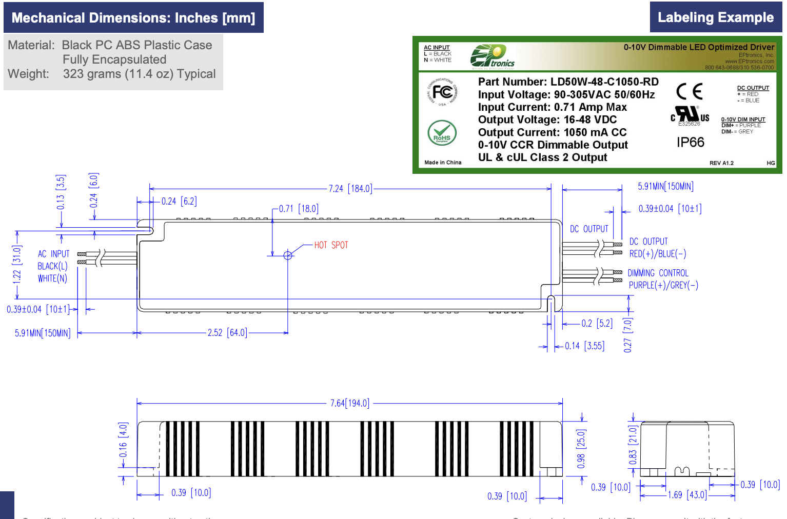 LD50W-24-C2100-PD Constant Current PWM Dimming LED Driver by EPtronics