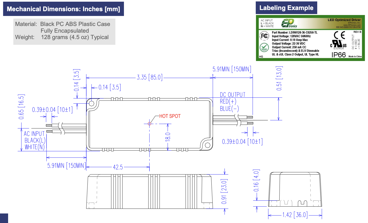 LD9W120-14-C0700-TL Constant Current Dimmable LED Driver by EPtronics