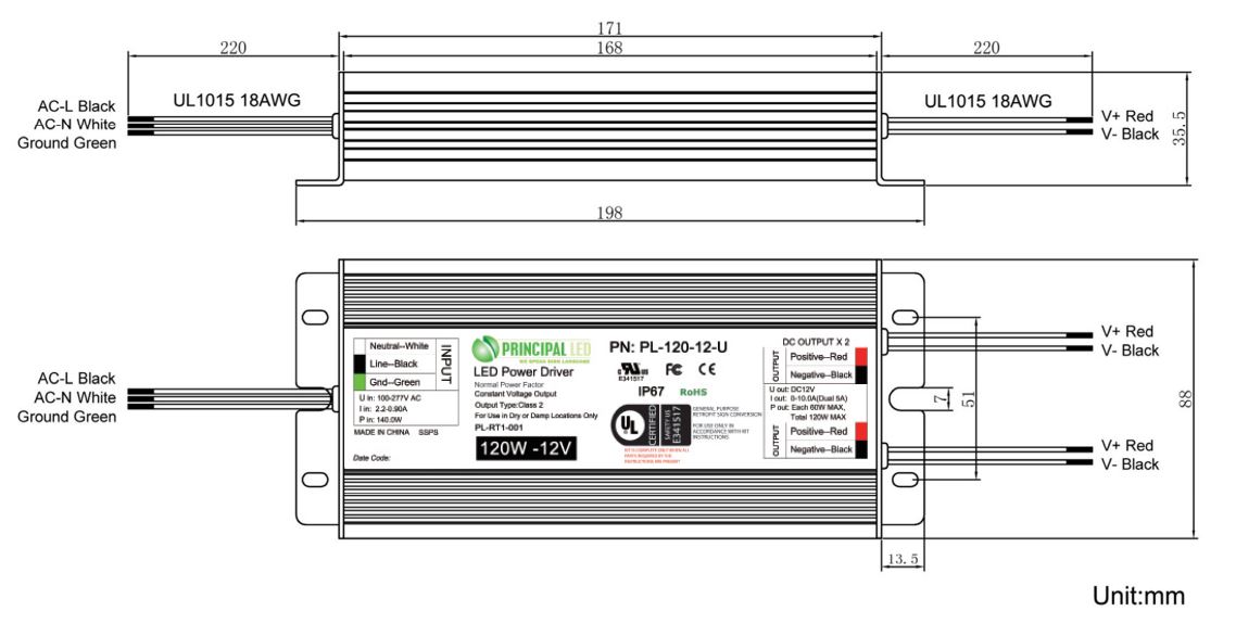 Operating from 120 VAC to 277 VAC with two 60W legs, Principal Sloan’s universal 12 VDC 120W LED power supply cuts the number of drivers required for a job—including the installation time—in half.