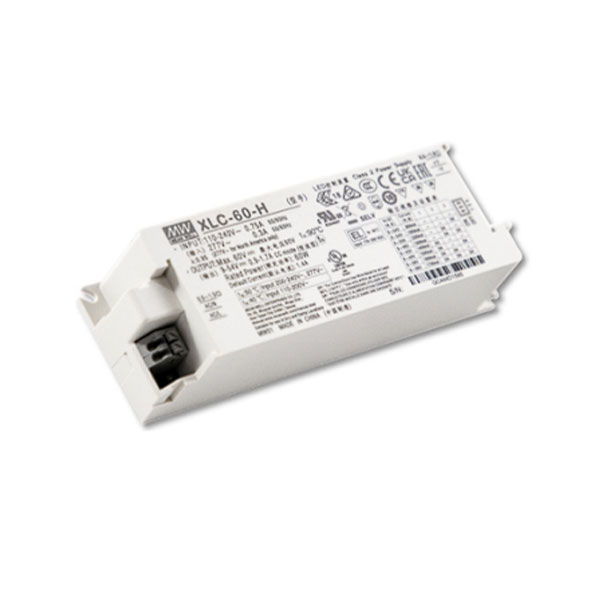 XLC-60 series is a 60W with constant power and constant voltage output LED driver. It can operate from 100-305V AC and output current ranging between 900mA to 1700mA selectable by dip switch or NFC setting. Thanks to high efficiency up to 90%, it is able to operate for -25ºC~90ºC case temperature under free air convection. XLC-60 series is designed based on latest safety regulations with 3-in-1 and DALI-2 dimming. XLC-60 can also be adjusted for brightness with a push button as a simple way dimming, so it provides more flexibility for LED lighting application