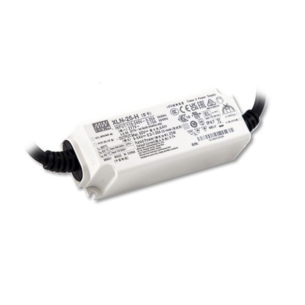 XLN-25 series is a 25W with constant power and constant voltage output LED driver. It can operate from 100-305V AC and output current ranging between 300mA to 1050mA selectable by NFC setting. Thanks to high efficiency up to 88%, it is able to operate for -25ºC~85ºC case temperature under free air convection. XLN-25 series is designed based on latest safety regulations with 3-in-1 and DALI-2 dimming. XLN-25 can also be adjusted for brightness with a push button as a simple way dimming, so it provides more flexibility for LED lighting application